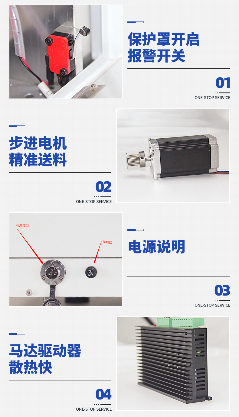 全電腦設定各種規(guī)格,進退料的旋鈕開關,傳送皮帶上升下降旋鈕及刀片更換。