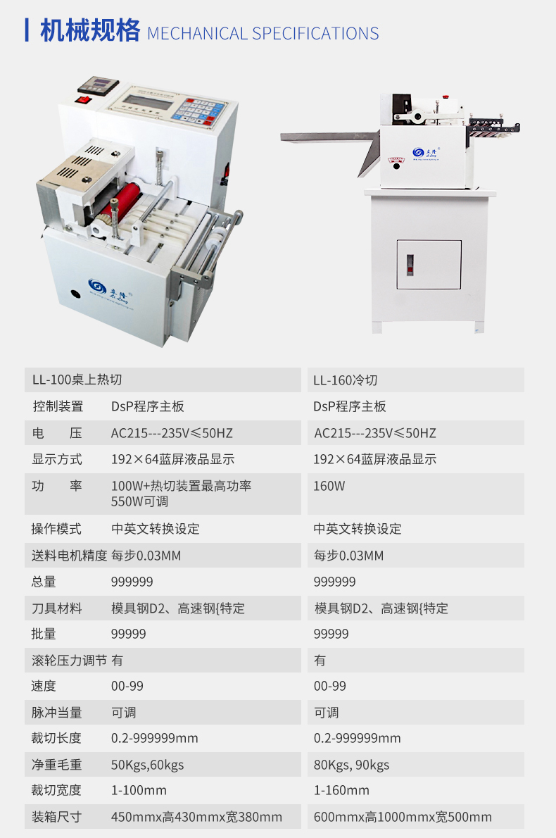 LL-100桌上全數(shù)字智能切斷機(jī)(熱切型)/(冷切型) 產(chǎn)品說明: 本機(jī)采用全數(shù)字智能控制裝置,按鍵操作,同時(shí)可任意設(shè)定切斷長度/數(shù)量、送料速度、且裁切精度準(zhǔn)確、耗損少、機(jī)型設(shè)計(jì)符合人體工學(xué)原理操作簡(jiǎn)單,廣泛適用于織帶、拉鏈、...